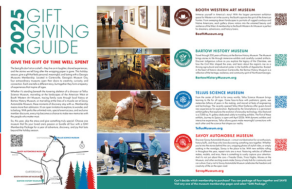 The best gifts don’ t sit on a shelf— they live on in laughter, shared experiences, and the stories we tell long after the wrapping paper is gone. This holiday season, give a gift that feels personal, meaningful, and lasting with a Georgia Museums Membership. Located in Cartersville, Georgia’ s Museum City, four extraordinary museums open their doors to creativity, curiosity, and connection. Each one tells a different story, but together they form a tapestry of experiences that inspire all ages.