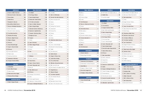 As of November 16, 2018. For up-to-date standings, please view online. NWHA Member Horses are Highlighted/Bold.