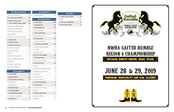 As of November 16, 2018. For up-to-date standings, please view online. NWHA Member Horses are Highlighted/Bold.