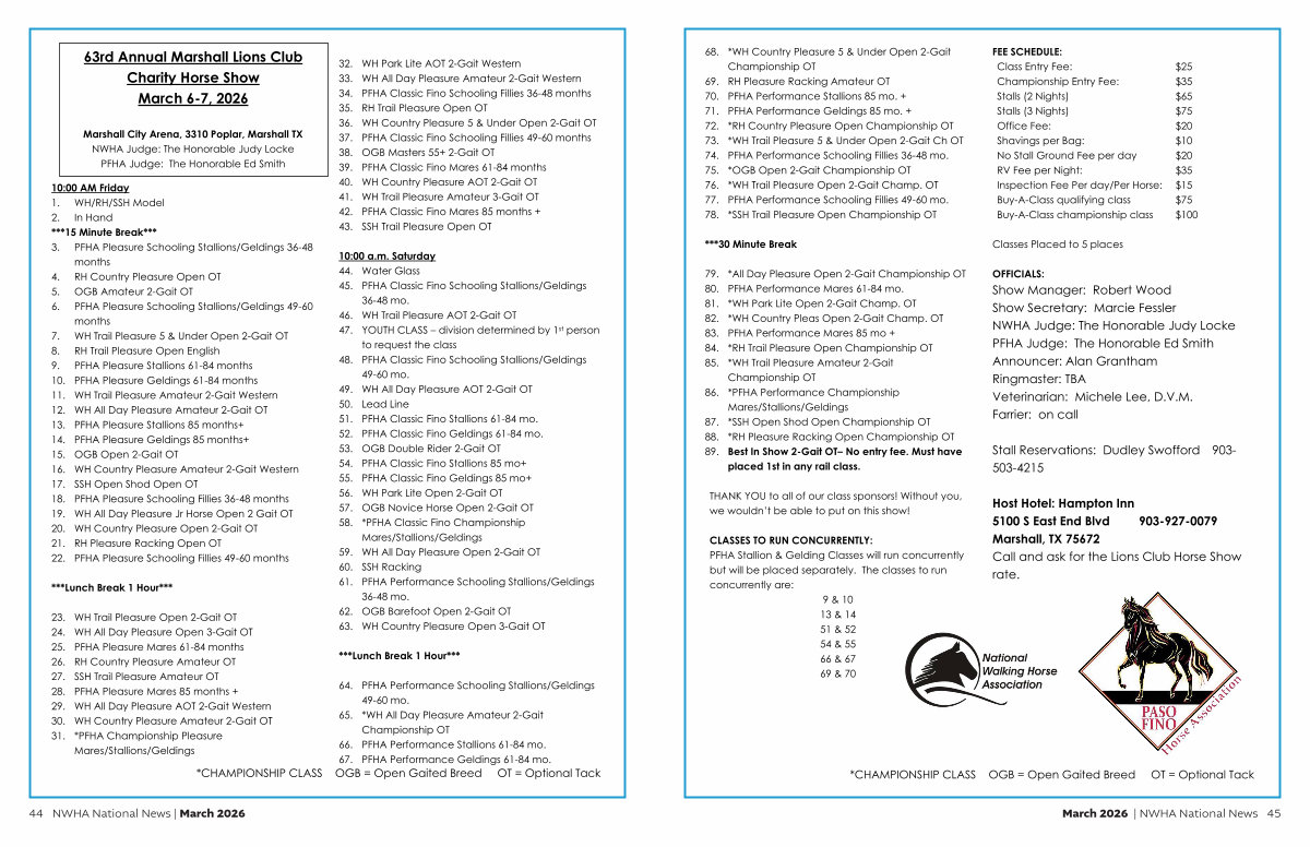 Best In Show 2-Gait OT – No entry fee. Must have |