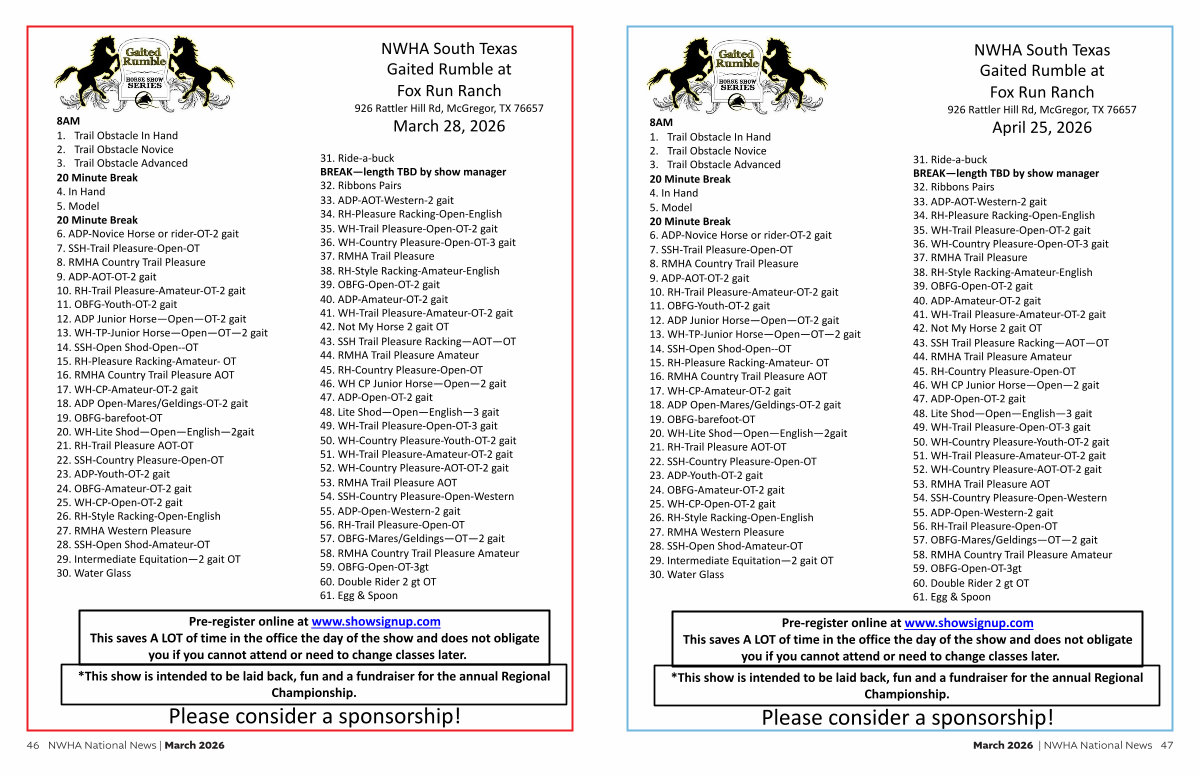 NWHA South Texas Gaited Rumble at Fox Run Ranch