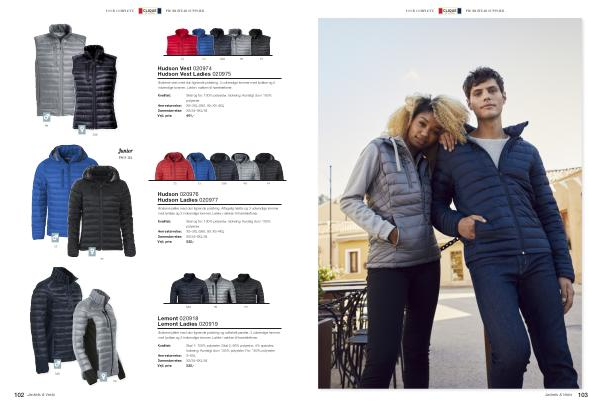 Kvalitet : Skal og for : 100 % polyester . Isolering : Kunstigt dun i 100 % polyester Herrestørrelse : XS – 3XL ( 580 , 99 : XS-4XL ) Damestørrelse : XS / 34 – XXL / 44 Vejl . pris : 401 , -