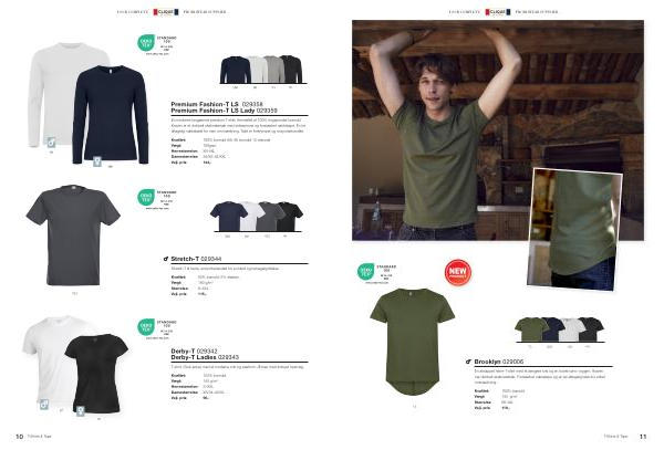 En afslappet herre-T-shirt med et længere snit og en lodret søm i ryggen . Kraven har dobbelt skalmateriale . Forstærket nakketape og en let aftagelig label for enkel ommærkning .