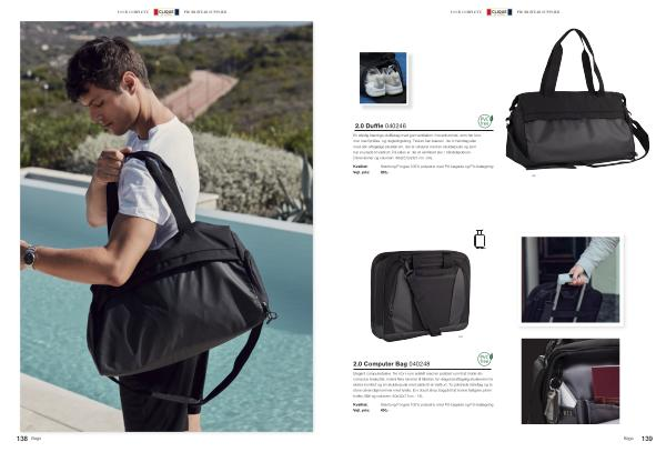 En alsidig trænings-dufflebag med god ventilation i hovedrummet , som har lommer med lynlåse og nøgleringskrog . Tasken kan bæres i de to håndtag eller med den aftagelige skulderrem , der er udstyret med en skulderpude og som har en plads til visitkort . På siden er der et ventileret sko / håndklæderum . Dimensioner og volumen : 48x25,5x28,5 cm -34L