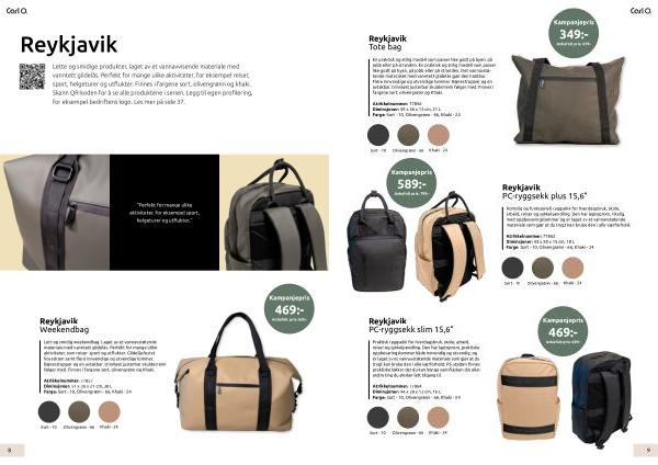 Laget av slitesterk og vannavvisende polyester. Innvendig finnes et polstret laptoprom samt et nettingrom. Utvendig finnes store lommer med plass til mobiltelefon og kabler. Polstret bakside og skulderremmer.