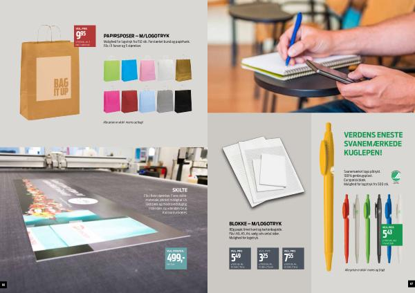 80g papir, limet kant og kartonbagside. Fås i A6, A5, A4, vælg selv antal sider. Mulighed for logotryk.
