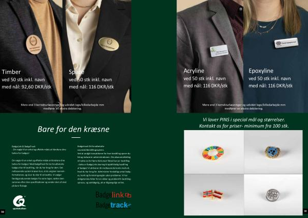 Space ved 50 stk inkl . navn med nål : 116 DKR / stk