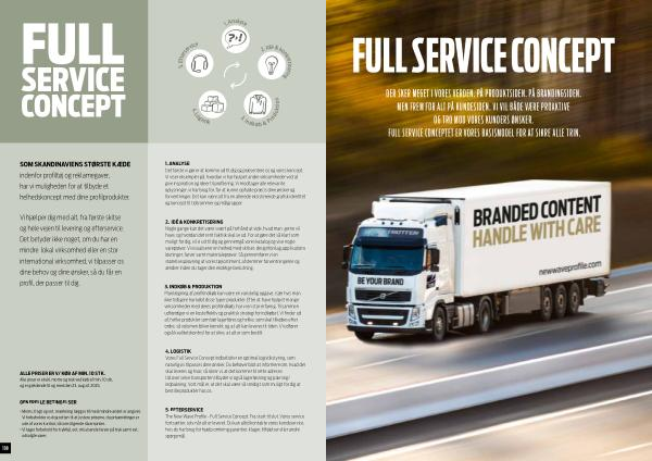 DER SKER MEGET I VORES VERDEN . PÅ PRODUKTSIDEN . PÅ BRANDINGSIDEN . MEN FREM FOR ALT PÅ KUNDESIDEN . VI VIL BÅDE VÆRE PROAKTIVE OG TRO MOD VORES KUNDERS ØNSKER . FULL SERVICE CONCEPTET ER VORES BASISMODEL FOR AT SIKRE ALLE TRIN .