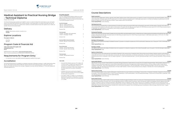 MA Bridge to PN Skills 31543310 will complement the foundational knowledge of the Medical Assistant in preparation for meeting the competencies of the Practical Nursing Skills course . ( Corequisite : 31-543-309 , MA Bridge Fundamentals ) Course Typically Offered : Spring