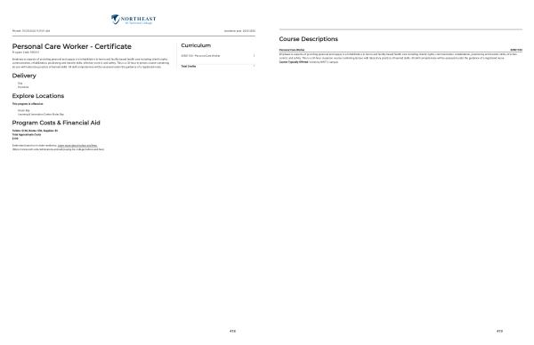 Personal Care Worker 30501100 Emphasizes aspects of providing personal and supportive / rehabilitative in-home and facility based health care including clients ' rights , communication , rehabilitation , positioning and transfer skills , infection control , and safety . This is a 30-hour , in-person course combining lecture with laboratory practice of learned skills . All skill competencies will be assessed under the guidance of a registered nurse . Course Typically Offered : Varies by NWTC campus