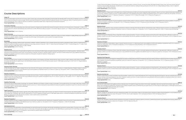 Respiratory Disease 10515176 Exploration of signs , symptoms , causes , progression , and treatment of diseases or disorders of the body that affect the cardiopulmonary system . Emphasis is placed on promotion of evidence-based practice using established clinical practice guidelines and published research for its relevance to patient care . ( Prerequisites : 10-515-111 , Respiratory Therapy Survey ; 10-806-177 , General Anatomy & Physiology ) Course Typically Offered : Fall
