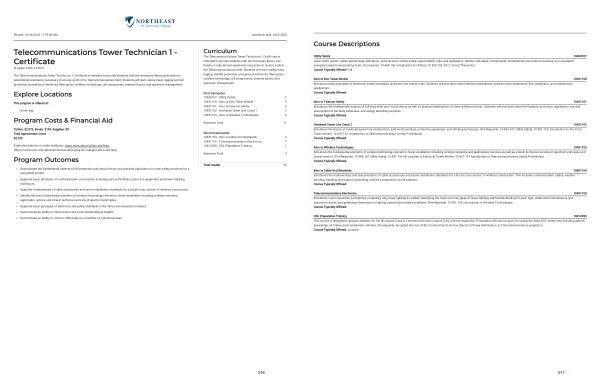 The Telecommunications Tower Technician 1 Certificate is intended to provide students with the necessary theory and hands-on educational experience necessary to receive a job in the Telecommunications field . Students will learn safety , basic rigging and fall protection , principles of electricity , fiber optics , wireless technology , cell components , antenna basics , and spectrum management .