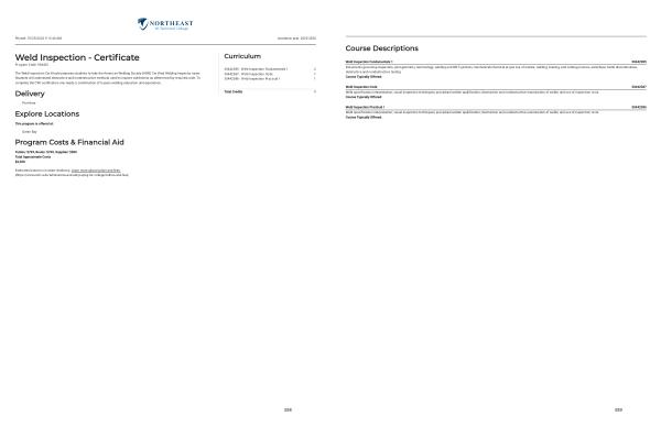 Weld Inspection Code 30442387 Weld specification interpretation ; visual inspection techniques ; procedure / welder qualification ; destruction and nondestructive examination of welds ; and use of inspection tools . Course Typically Offered :