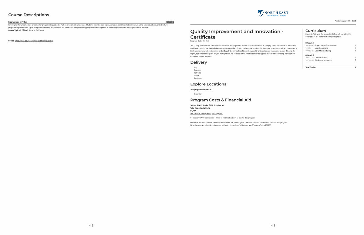 Estimates based on in-state residency. Please visit the following URL to learn more about tutition and fees for this program. https:// www. nwtc. edu / admissions-and-aid / paying-for-college / tuition-and-fees? ProgramCode = 901968