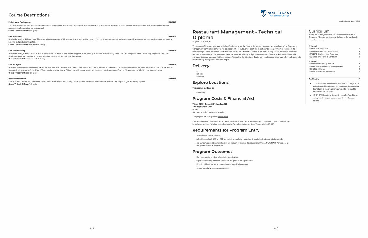 Lean Operations 10182111 Develop knowledge skills, process of lean operations management / JIT, quality management, quality control, continuous improvement methodologies, statistical process control chart interpretation, material handling and production logistics. Course Typically Offered: Summer Fall Spring