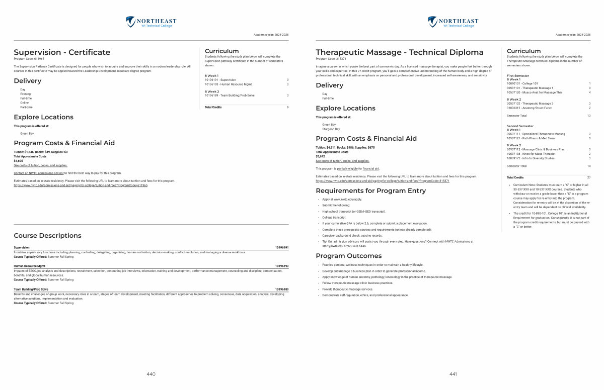 Estimates based on in-state residency. Please visit the following URL to learn more about tutition and fees for this program. https:// www. nwtc. edu / admissions-and-aid / paying-for-college / tuition-and-fees? ProgramCode = 315371