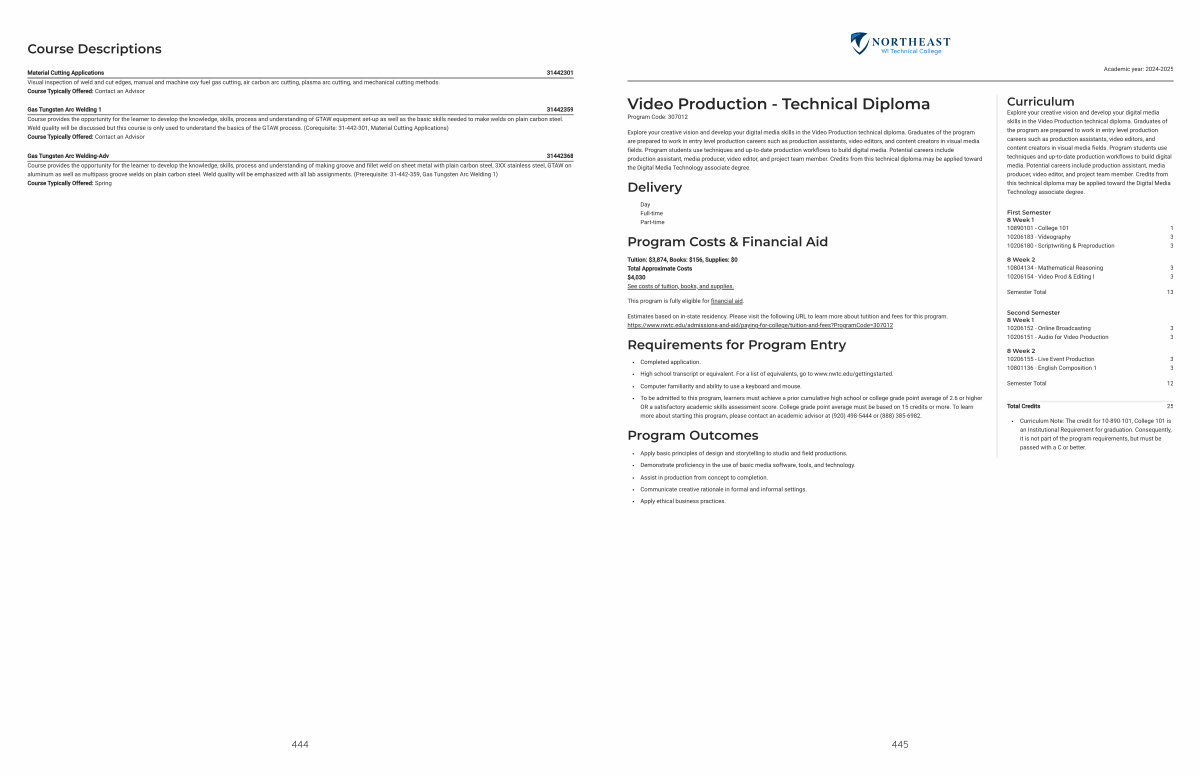 Explore your creative vision and develop your digital media skills in the Video Production technical diploma. Graduates of the program are prepared to work in entry level production careers such as production assistants, video editors, and content creators in visual media fields. Program students use techniques and up-to-date production workflows to build digital media. Potential careers include production assistant, media producer, video editor, and project team member. Credits from this technical diploma may be applied toward the Digital Media Technology associate degree.