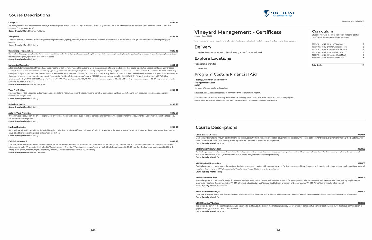 English Composition 1 10801136 Learners develop knowledge / skills in planning, organizing, writing, editing. Students will also analyze audience / purpose, use elements of research, format documents using standard guidelines, and develop critical reading skills.( Prerequisite: High school GPA greater / equal to 2.6; OR ACT Reading score greater / equal to 16 AND English greater / equal to 18; OR Next Gen Reading score greater / equal to 250 AND Writing score greater / equal to 260; OR " preparatory course( s)", contact academic advisor at 920-498-5444) Course Typically Offered: Summer Fall Spring