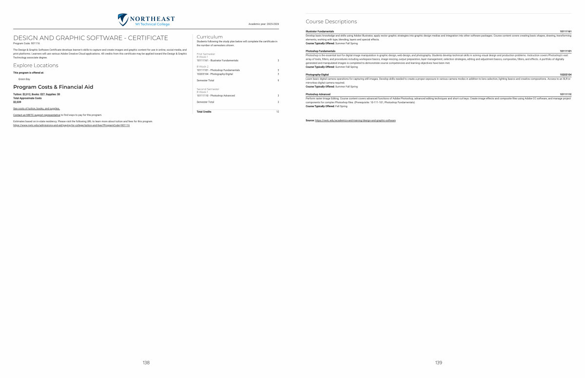 The Design & Graphic Software Certificate develops learner ' s skills to capture and create images and graphic content for use in online, social media, and print platforms. Learners will use various Adobe Creative Cloud applications. All credits from this certificate may be applied toward the Design & Graphic Technology associate degree.