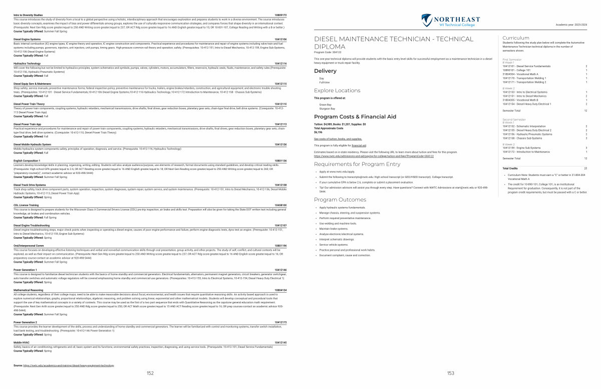 10412152- Schematic Interpretation 2 10412155- Diesel Heavy Duty Electrical 2 2 10412156- Hydraulic / Pneumatic Systems 2 10412158- Chassis Sub-Systems 3