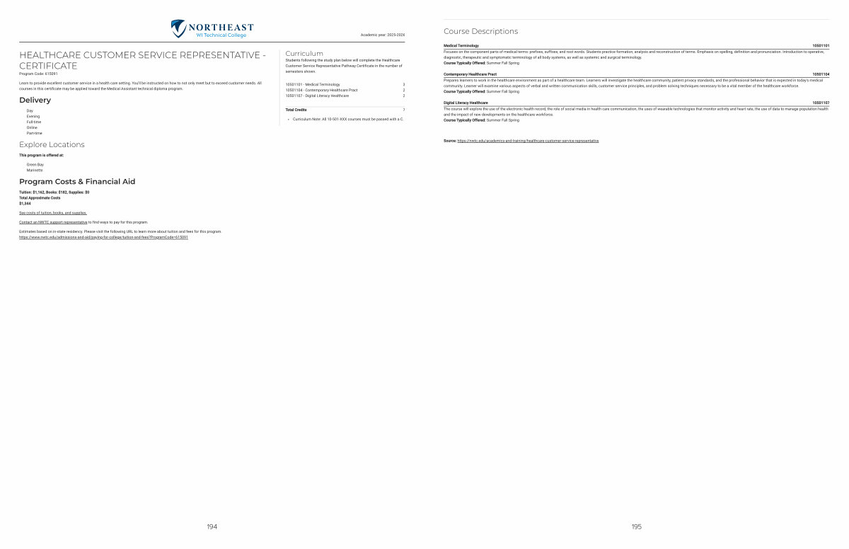 Source: https:// nwtc. edu / academics-and-training / healthcare-customer-service-representative