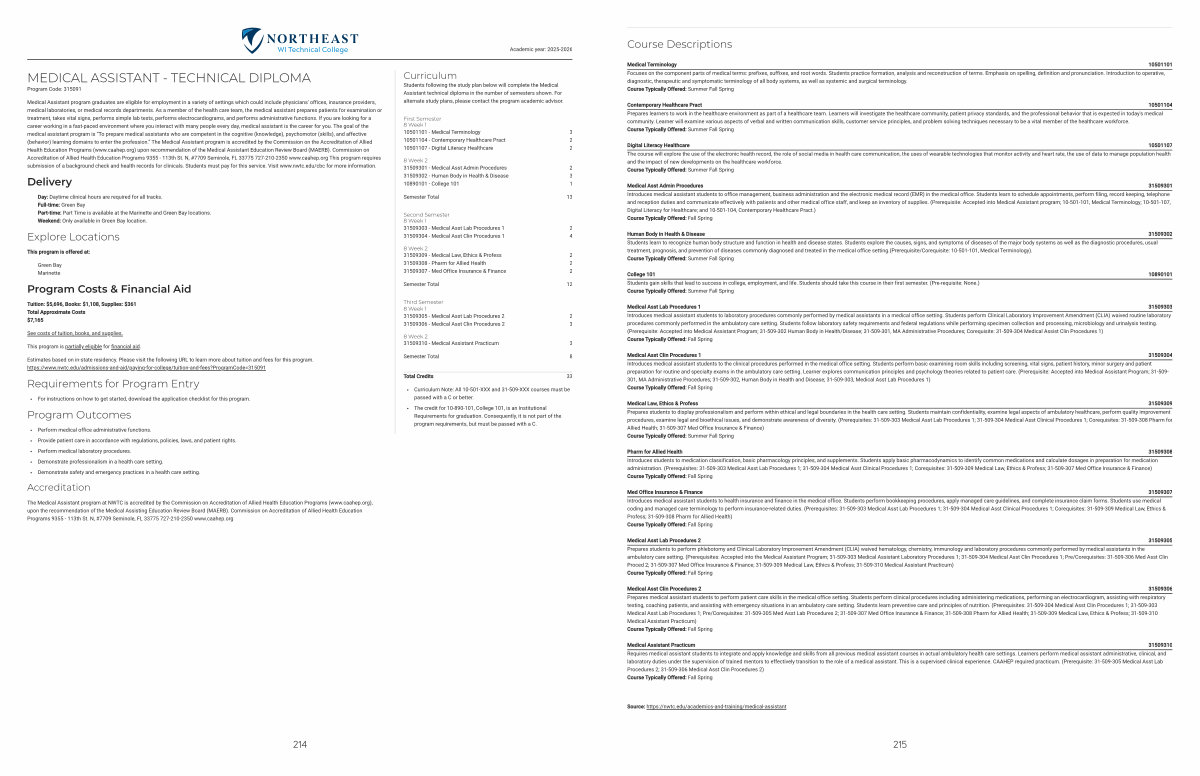 31509303- Medical Asst Lab Procedures 1 2 31509304- Medical Asst Clin Procedures 1 4