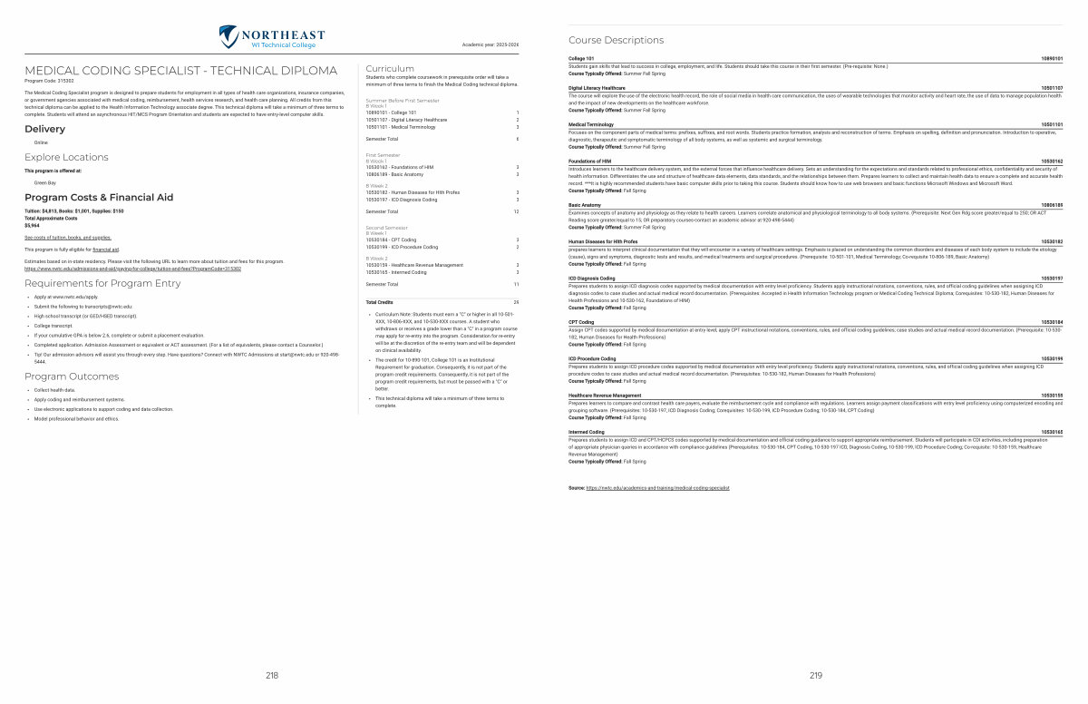 The Medical Coding Specialist program is designed to prepare students for employment in all types of health care organizations, insurance companies, or government agencies associated with medical coding, reimbursement, health services research, and health care planning. All credits from this technical diploma can be applied to the Health Information Technology associate degree. This technical diploma will take a minimum of three terms to complete. Students will attend an asynchronous HIT / MCS Program Orientation and students are expected to have entry-level computer skills.