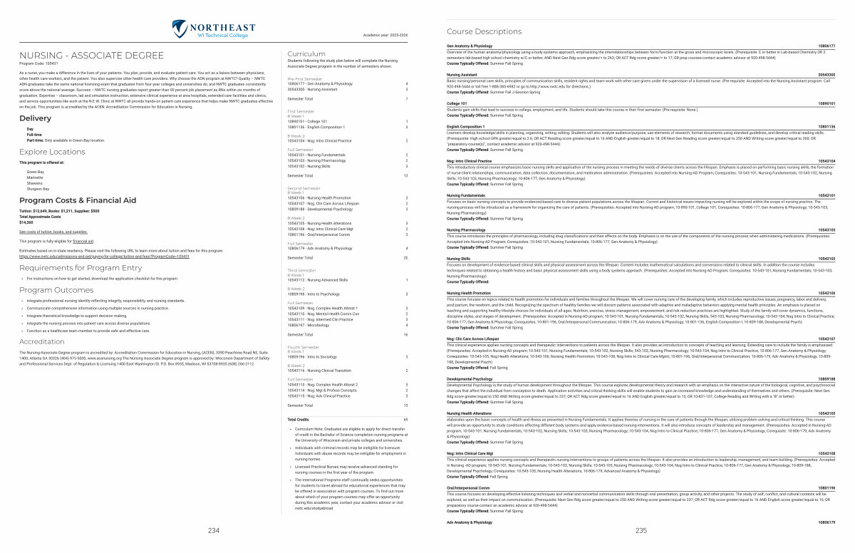 Curriculum Note: Graduates are eligible to apply for direct transfer of credit in the Bachelor of Science completion nursing programs at the University of Wisconsin and private colleges and universities.