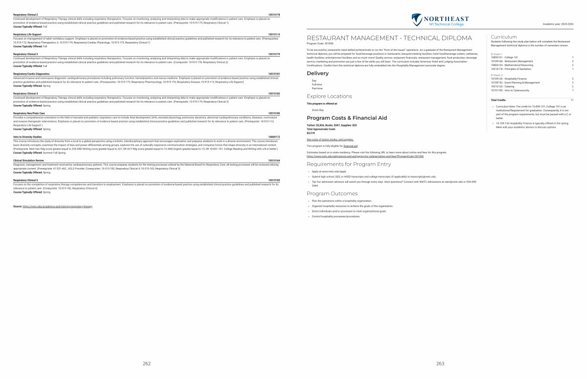 RESTAURANT MANAGEMENT- TECHNICAL DIPLOMA