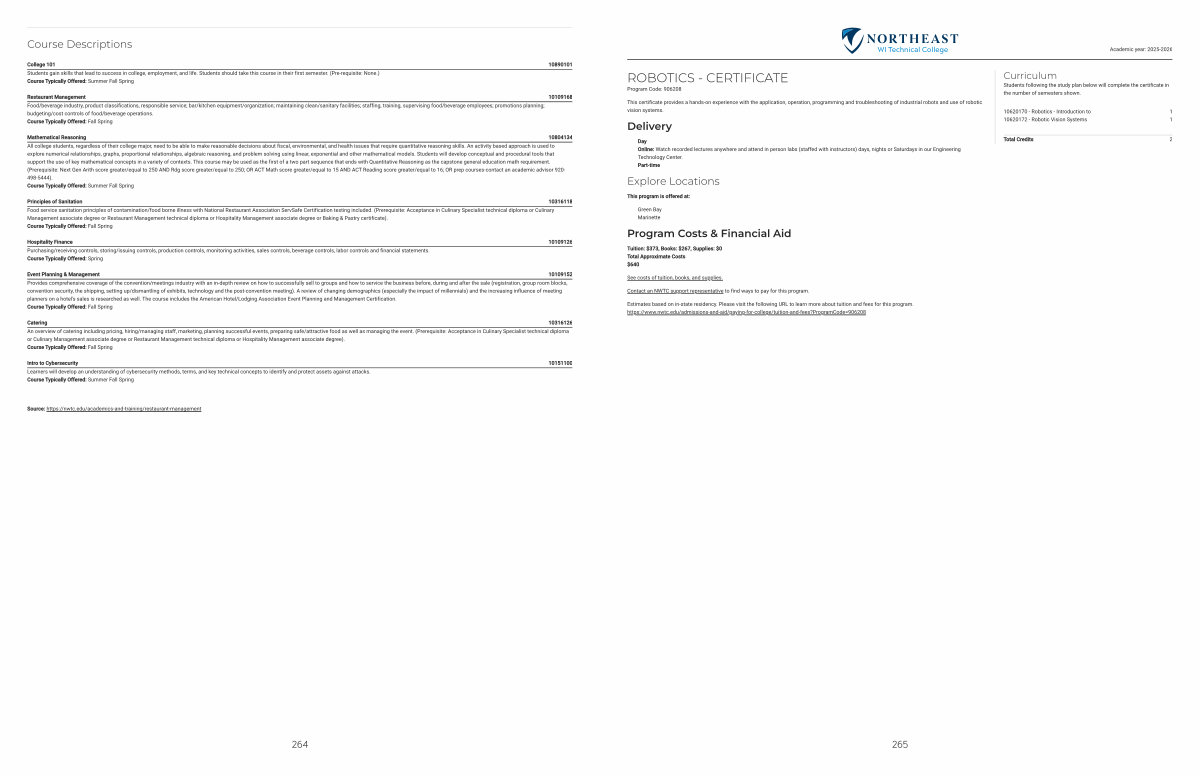 Estimates based on in-state residency. Please visit the following URL to learn more about tuition and fees for this program. https:// www. nwtc. edu / admissions-and-aid / paying-for-college / tuition-and-fees? ProgramCode = 906208