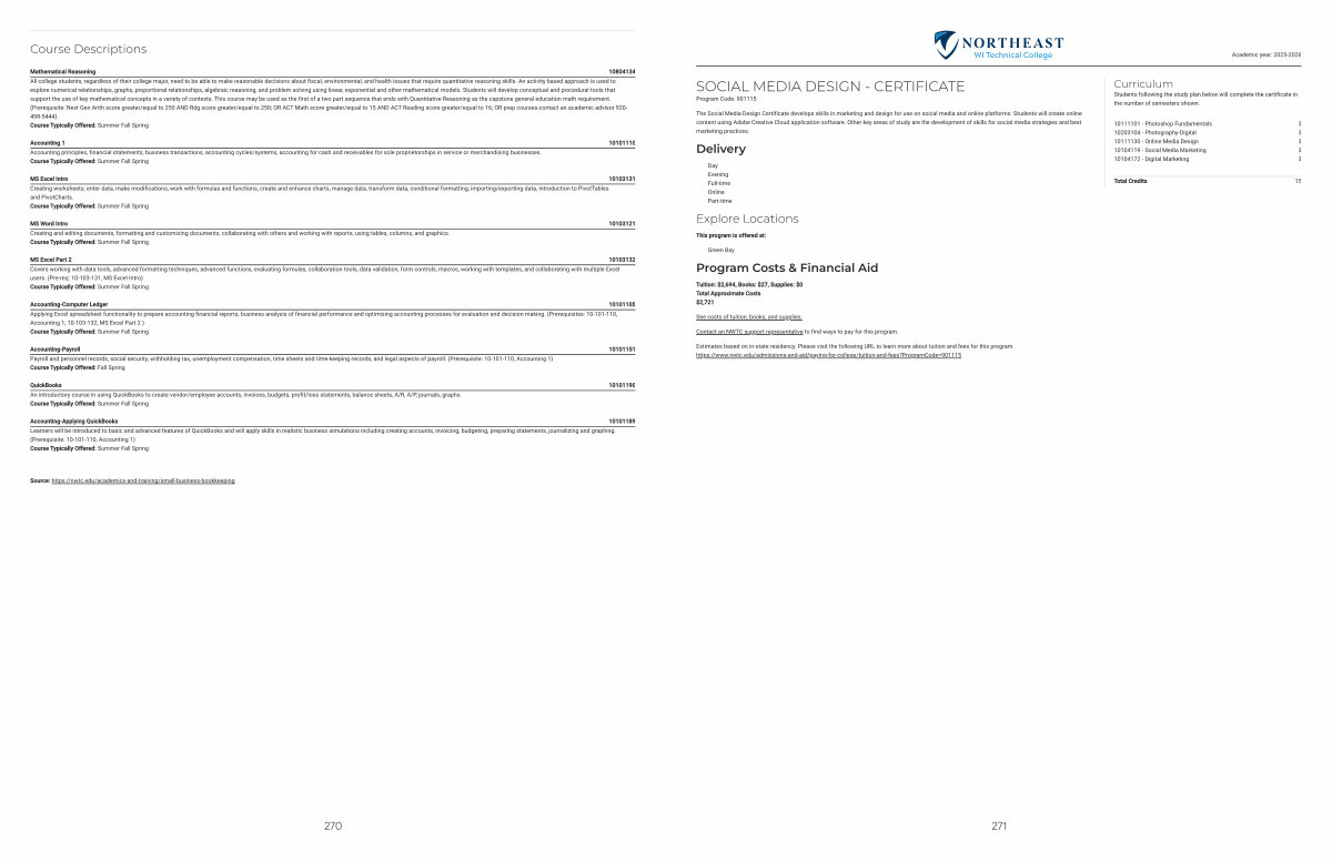 Estimates based on in-state residency. Please visit the following URL to learn more about tuition and fees for this program. https:// www. nwtc. edu / admissions-and-aid / paying-for-college / tuition-and-fees? ProgramCode = 901115