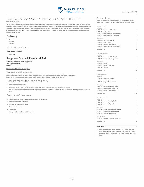 CULINARY MANAGEMENT- ASSOCIATE DEGREE