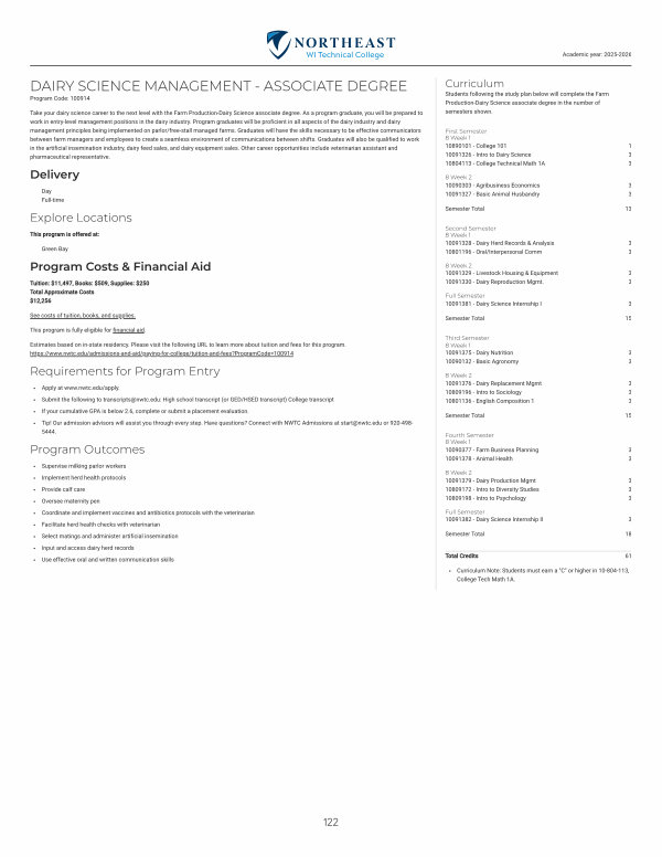 DAIRY SCIENCE MANAGEMENT- ASSOCIATE DEGREE