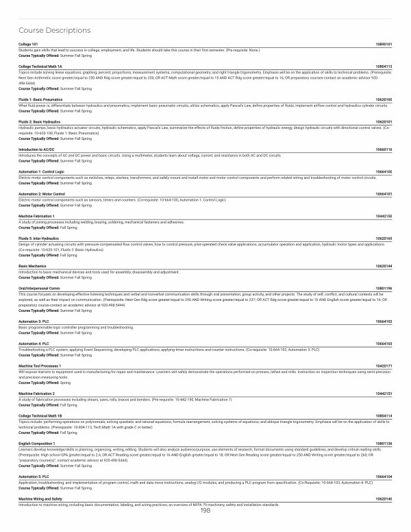 Automation 3: PLC 10664102 Basic programmable logic controller programming and troubleshooting. Course Typically Offered: Summer Fall Spring