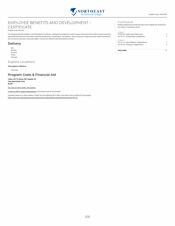 The Employee Benefits, Relations, and Development Certificate is designed for people who wish to acquire and improve their skills in human resources, specifically with the factors that affect employee development, compensation, and relations. These courses also apply toward the credits necessary to earn the Human Resources Associate Degree. Courses are offered in alternative delivery formats.