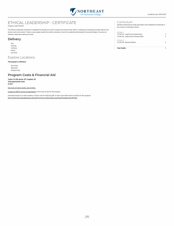 The Ethical Leadership Certificate is designed for people who wish to acquire and improve their skills in creating and maintaining a legal, ethical, and diverse work environment. These courses apply toward the credits necessary to earn the Leadership Development Associate Degree. Courses are offered in alternative delivery formats.