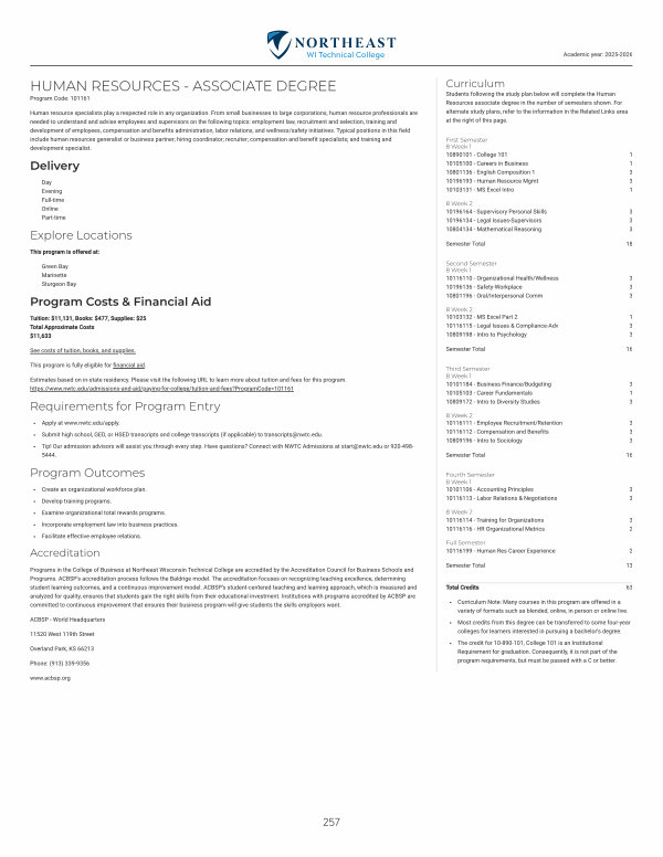 HUMAN RESOURCES- ASSOCIATE DEGREE