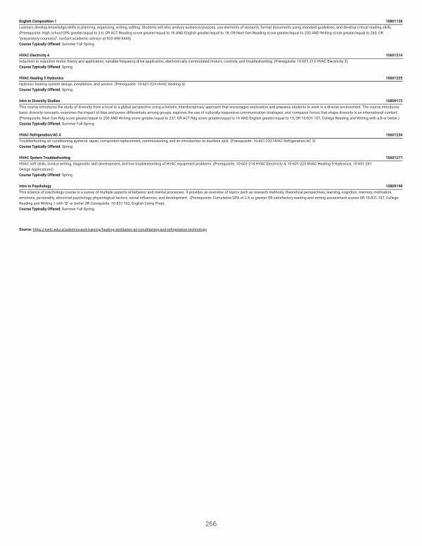 HVAC System Troubleshooting 10601271 HVAC soft skills, invoice writing, diagnostic skill development, and live troubleshooting of HVAC equipment problems.( Prerequisite: 10-601-214 HVAC Electricity 4, 10-601-225 HVAC Heating 5-Hydronics, 10-601-261 Design Applications) Course Typically Offered: Spring