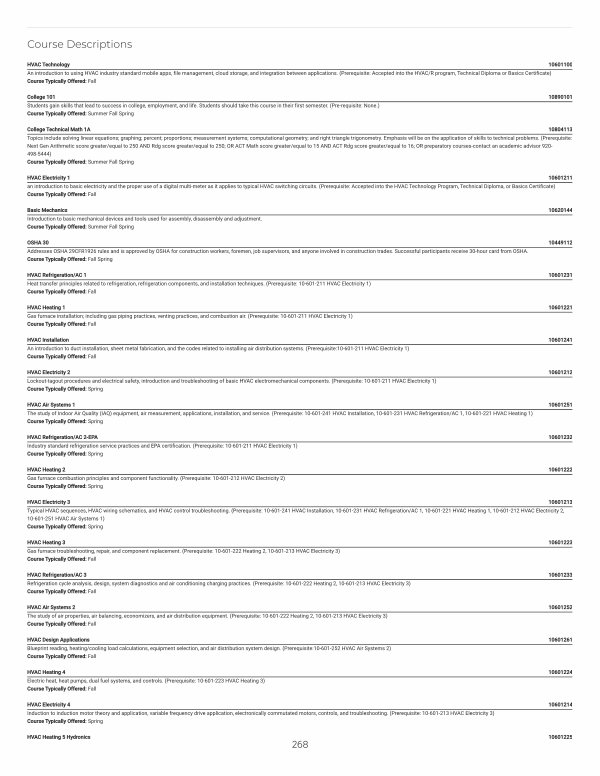 HVAC Heating 2 10601222 Gas furnace combustion principles and component functionality.( Prerequisite: 10-601-212 HVAC Electricity 2) Course Typically Offered: Spring