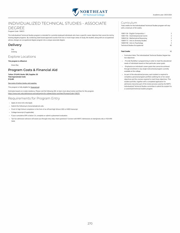 Curriculum Note: The Individualized Technical Studies Degree has two objectives: