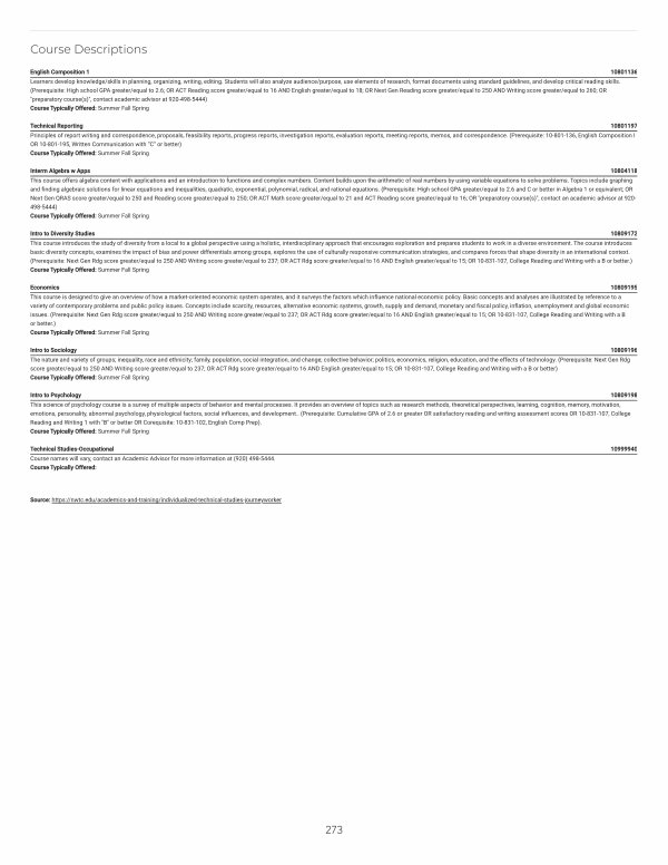Technical Studies-Occupational 10999940 Course names will vary, contact an Academic Advisor for more information at( 920) 498-5444. Course Typically Offered: