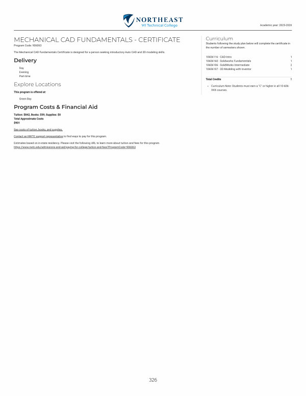 The Mechanical CAD Fundamentals Certificate is designed for a person seeking introductory Auto CAD and 3D modeling skills.