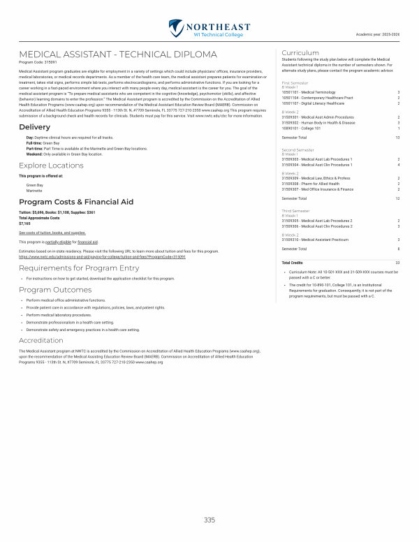 31509303- Medical Asst Lab Procedures 1 2 31509304- Medical Asst Clin Procedures 1 4