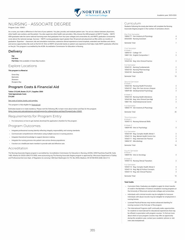 Curriculum Note: Graduates are eligible to apply for direct transfer of credit in the Bachelor of Science completion nursing programs at the University of Wisconsin and private colleges and universities.