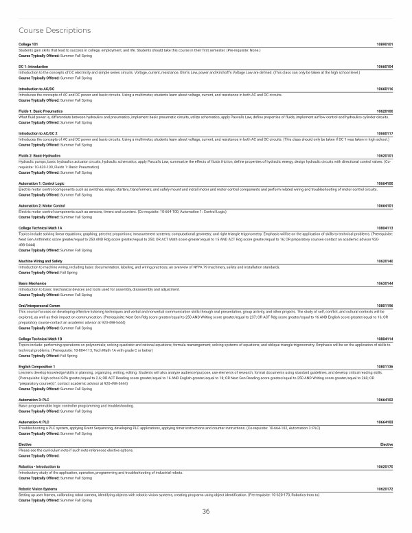 Automation 3: PLC 10664102 Basic programmable logic controller programming and troubleshooting. Course Typically Offered: Summer Fall Spring