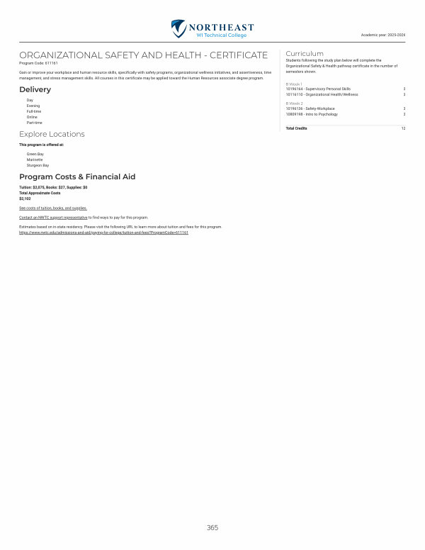 Estimates based on in-state residency. Please visit the following URL to learn more about tuition and fees for this program. https:// www. nwtc. edu / admissions-and-aid / paying-for-college / tuition-and-fees? ProgramCode = 611161