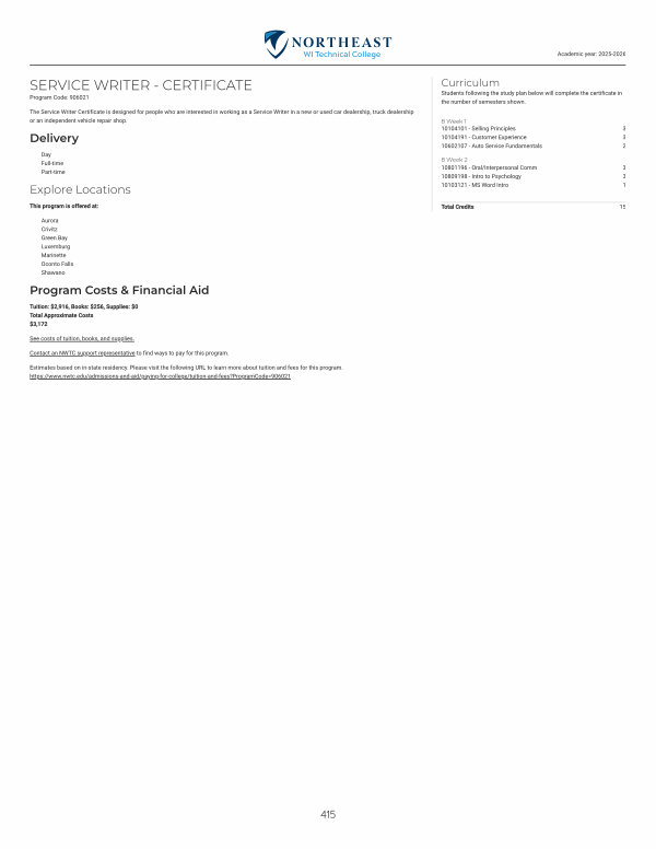 The Service Writer Certificate is designed for people who are interested in working as a Service Writer in a new or used car dealership, truck dealership or an independent vehicle repair shop.