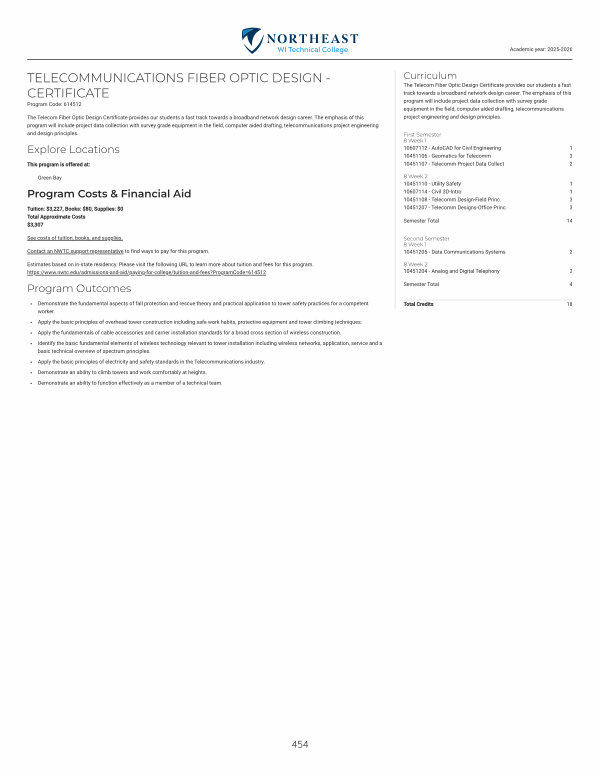 The Telecom Fiber Optic Design Certificate provides our students a fast track towards a broadband network design career. The emphasis of this program will include project data collection with survey grade equipment in the field, computer aided drafting, telecommunications project engineering and design principles.