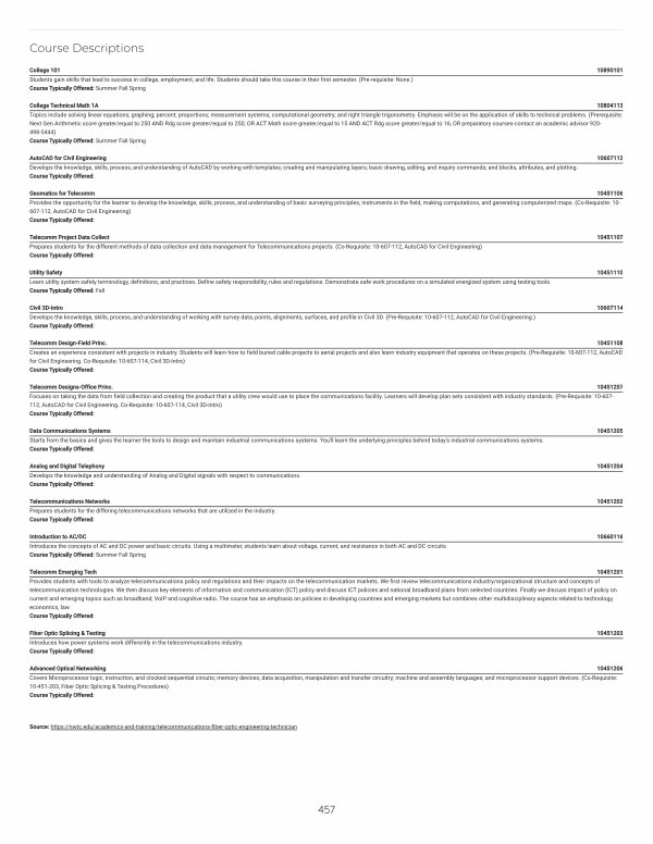 Fiber Optic Splicing & Testing 10451203 Introduces how power systems work differently in the telecommunications industry. Course Typically Offered:
