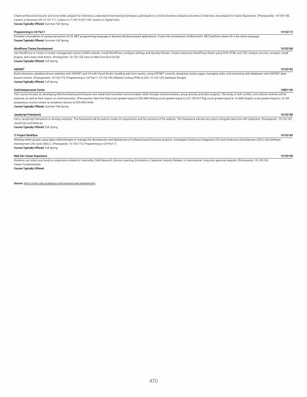 Web Dev Career Experience 10152198 Students can select any hands on experience related to: Internship, Field Research, Service Learning, Simulations, Capstone, Industry Related, or International. Instructor approval required.( Prerequisite: 10-105-103, Career Fundamentals) Course Typically Offered: